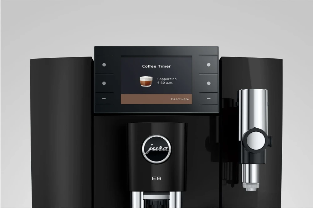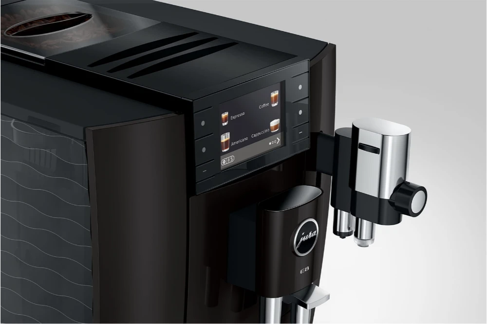 Kávovar E8 nabízí více pohodlí, než kdykoli předtím. Díky funkcím Coffee Timer a J.O.E.® je vaše ranní káva připravena ihned jak vstanete, a je perfektní cestou pro začátek nového dne. Funkce Quality Assistant zajišťuje úspornější údržbu kávovaru E8 a zaručuje maximální hygienu pro maximální požitek. Milovníci kávy se mohou snadno orientovat v různých světech požitku, které jsou pro přehlednost barevně odlišeny, na 3,5palcovém barevném displeji s bočními tlačítky.